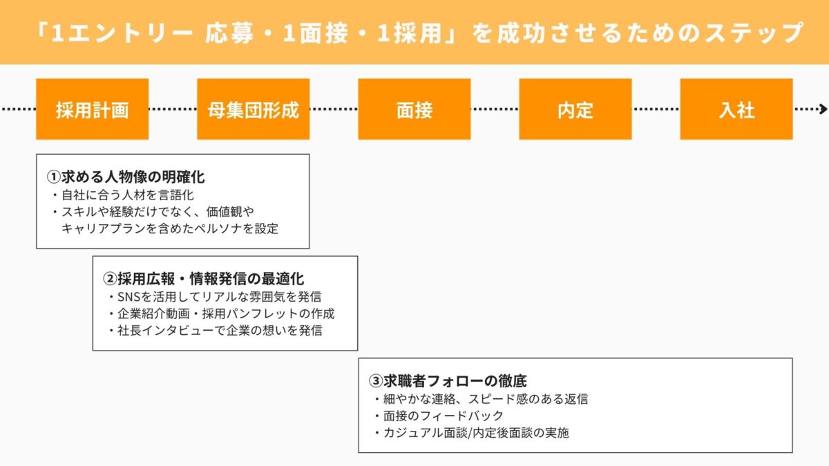 「1エントリー・1面接・1採用」を成功させるためのステップ