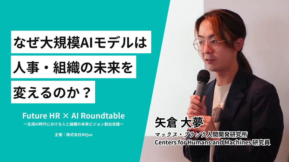 2025年12月8日(月)に株式会社MQue主催で開催された「Future HR × AI Roundtable~生成AI時代における人と組織の未来ビジョン創出会議~」を取材。